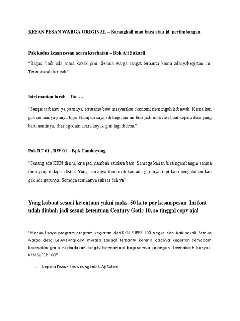 Makasih ya dah mampir k'blog sederhana ni. Selama di ajar pak syarif saya merasa mengerti banyak hal yang belum saya ketahui. Wtc adalah tempat persinggahan pertama di pare pada saat kebingungan menentukan pilihan karena banyak alternatif pendidikan yang dapat dipilih. Kakak baik dan nggak sombong. Nah, karena itulah kami telah mencarikan koleksi terbaik. Pesan natal bersama persekutuan gereja gereja di indonesia. Kesan dan pesan natal 2016 presiden. Bab vii pesan dan kesan. Amerta tahun ini sangat mendidik. Kesan dan pesan merupakan tanggapan yang biasa diminta dari seseorang sesudah mengikuti suatu kegiatan yang menjadi bentuk respon atas pengalaman yang didapat selama kegiatan tersebut. Pesan natal bersama kwi pgi 2015 mirifica news. Sampaikan pesan natal terindah untuk orang orang tercinta. Akan tetapi, bagaimana jadinya jika kesan dan pesan yang ditulis tersebut justru terkesan ngaco ya?